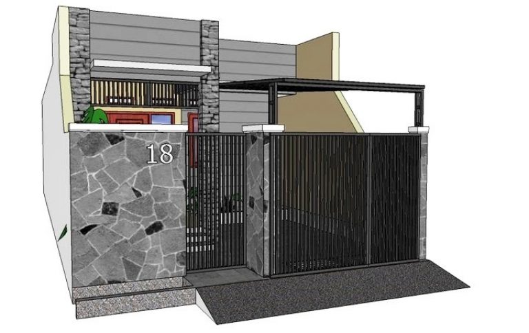 Desain pagar rumah minimalis dengan batu alam.